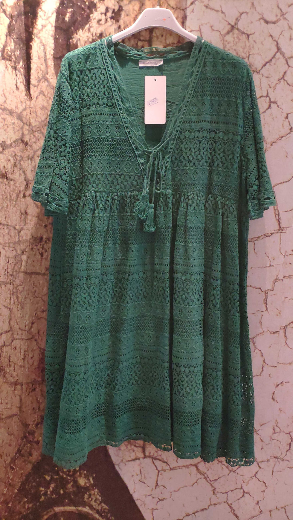 Vestido de encaje corto por delante largo por detrás escote de pico